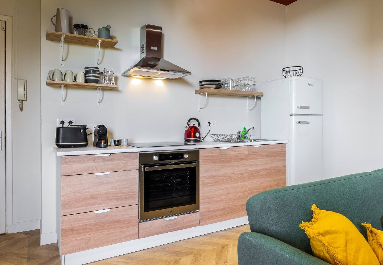 La cuisine est équipée de plaques électriques, d'un four, une machine à café, . Casseroles, poêles, et tout le nécessaire pour le repas (assiettes, couverts, verres à eau, verres à vins, flute à champagne)